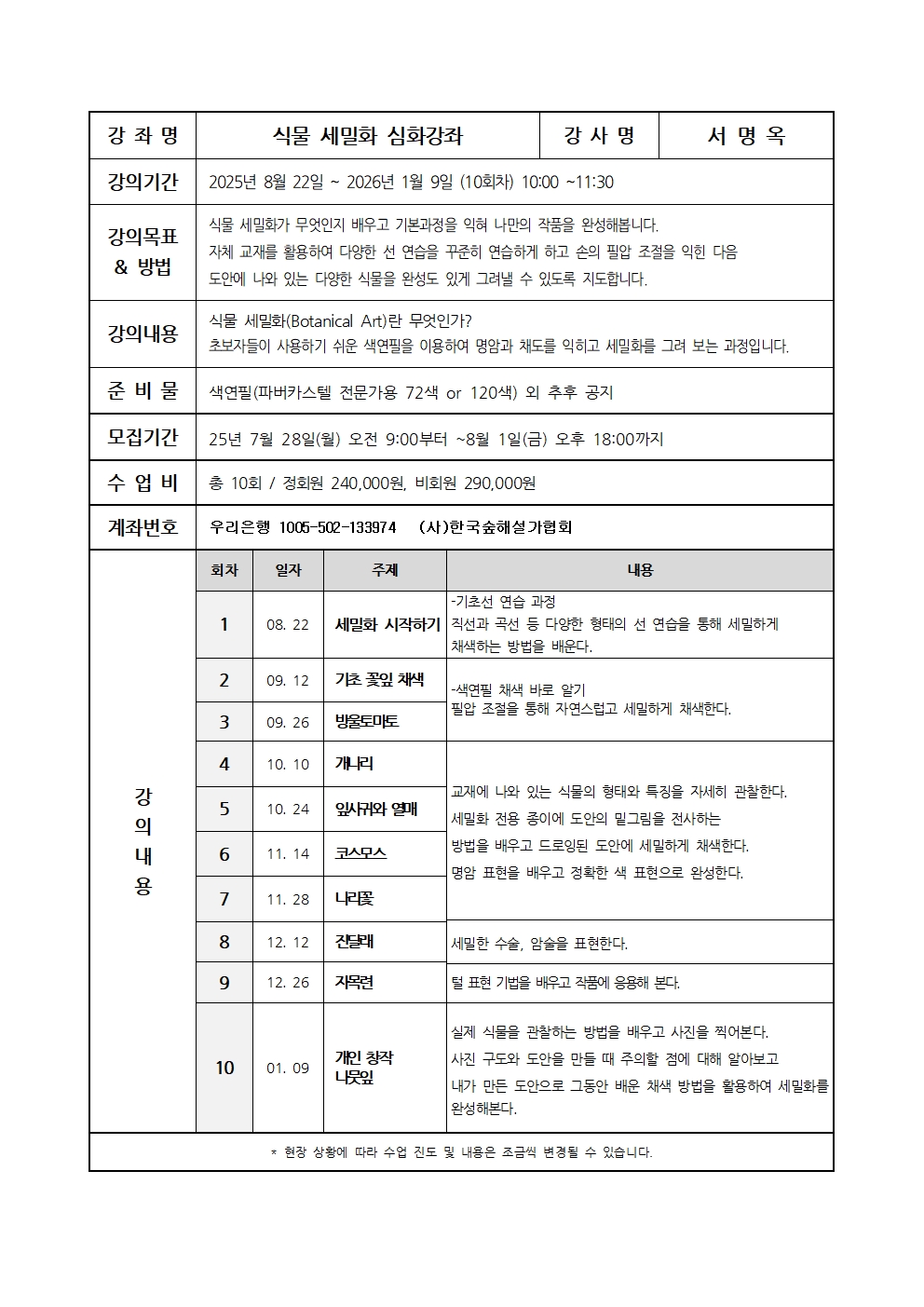 식물 세밀화 심화강좌 수강생 모집-마감