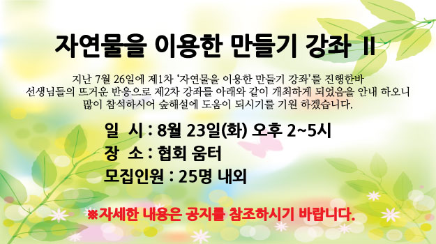 자연물을 이용한 만들기 강좌 안내 (제2차)