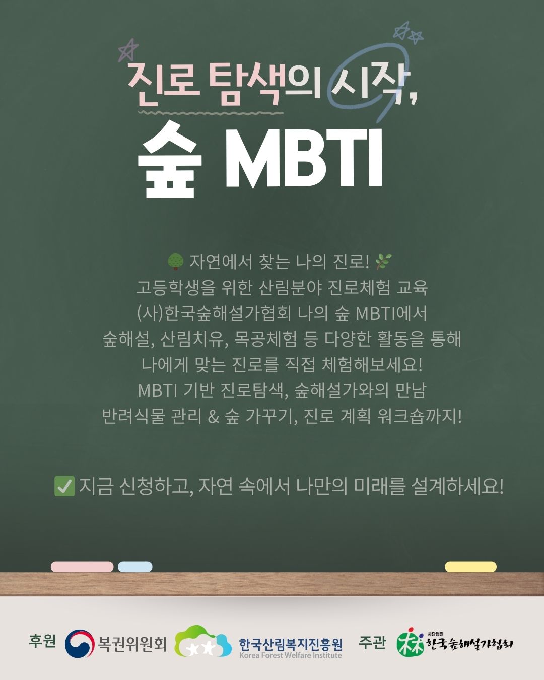 [한국산림복지진흥원]산림복지 취업 아카데미 자격취득형 교육비 지원