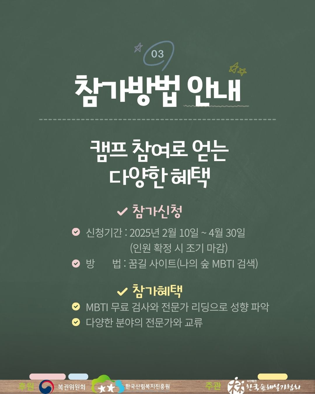| 435 | 숲해설가 전문과정 교육 확정자 발표(2025년 제53기) | 한국숲해설가협회 | 6290 | 2025.03.25 10:36 |