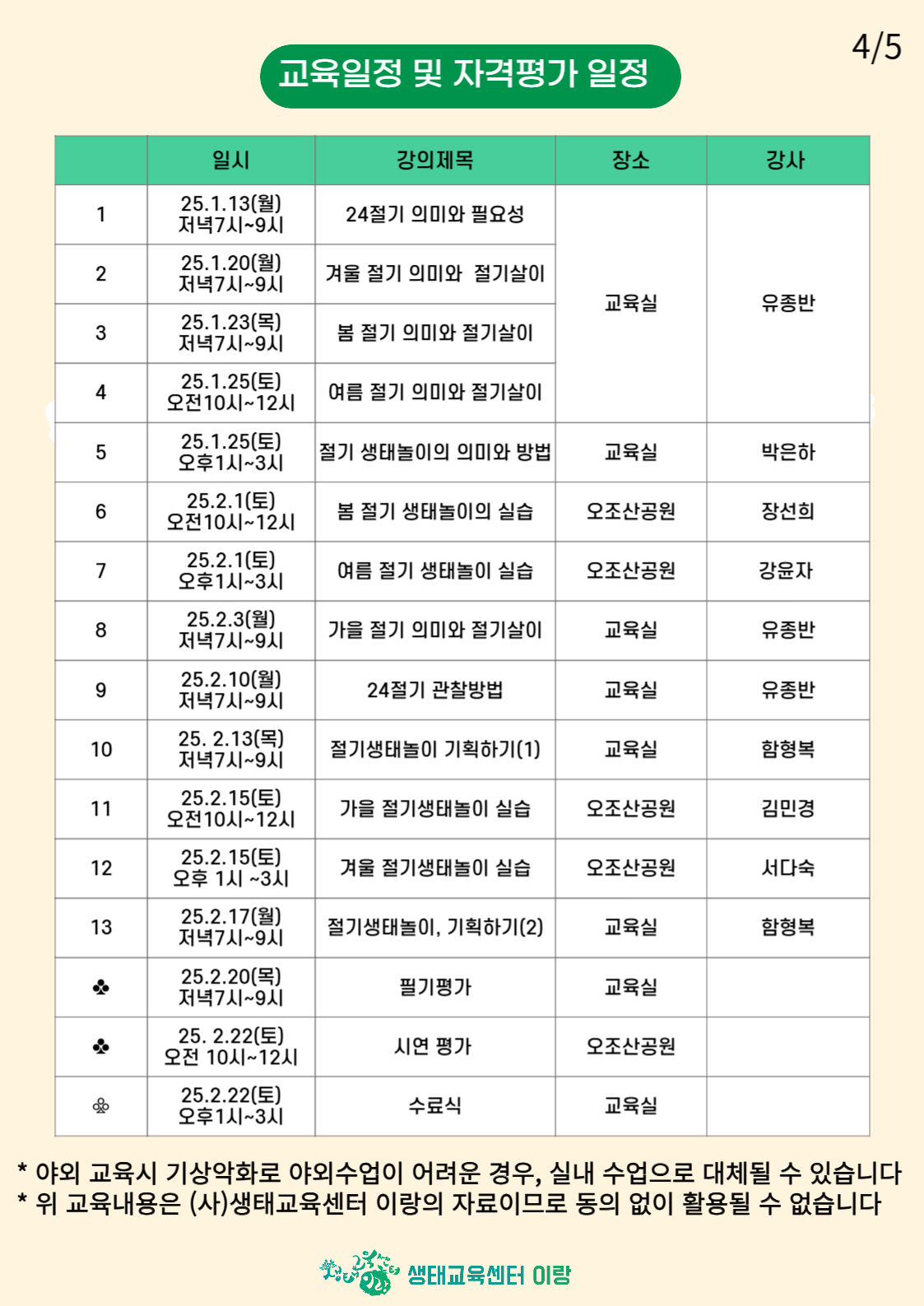 [절기생태놀이교육사][2급] 양성과정 제1기 교육생 모집